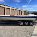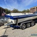 2001 Schiada 24′. Paul Pfaff 600ci Whippled BBC. Dyno’d at 1325hp. 5 Liter Whipple. CMI Big Tube Headers. Custom Imco Tails. Imco SCX4 Upper and Lower. 5 Blade Maximus Propeller. Imco Extension Box. Imco Twin Ram Hydraulic Steering. Mercury K-Planes. Full Custom Rigging w/Billet Tanks and Brackets. Gel Coated Bilge w/Balsa and Exotic Wood Inlays. Full Balsa and Gel Coated Floors Throughout Cockpit w/Custom Bound Snap In Carpet. Powder Coated Fuel Tanks. Custom Billet Pedal Assembly. Hydraulic Helm w/CRT Switches on Steering Wheel. AutoMeter Gauges. Mechanical Trim Indicators. New Interior w/Custom Hatch and Fully Gel Coated Underside. Fully Anodized and Powder Coated Hardware. JL Audio Stereo. Triple Axle Trailer w/18″ Boyd’s Billet Wheels, Stainless Fenders and Guides, Powder Coated Winch and Jack, and Chromed Actuator. Boat was completely re-rigged in 2021 at Prime Marine. One of the nicest built 24’s in existence and has just about everything a custom Schiada could have done to it. Please call for more information or to schedule a showing. Boat is located at Havasu Landing, showings by appointment only. 180K Outdrive1.com #SchiadaBoats #skiracing #powerboat #primemarine #parkeraz #riverdavesplace #rdp #sbmag #speedboat #boatforsale #hallett #fastboats #havasu #whipplecharger #supercharged #customboat #boat #exoticboat